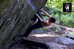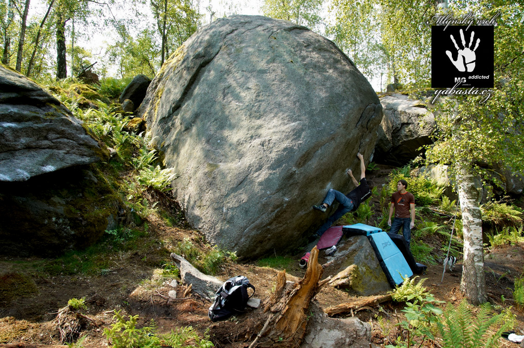 Vysoké kapradí, stín lesa, obrrovské krásné kameny a šprtajzlíci lezoucí po nich. Po snídani v trávě a první vylezené „plotničce“ mám osobně pro ten den splněno, ale jde se dál, holt může být člověk někdy malilinko nad plán.. Zato Vláďa Láďa, Lukáš i Pája se činí i na novém hřišti, obzvláště pak Pája byl pro ten den Mr. Flash!